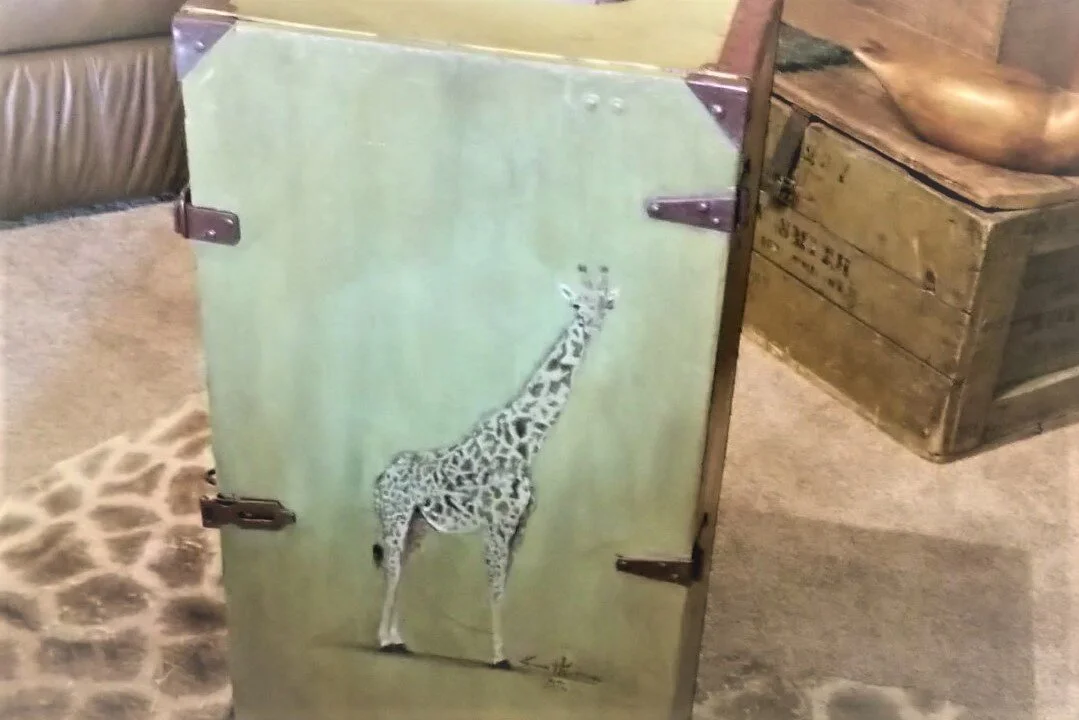 See this beautiful Africa inspired Giraffe Box and matching real Giraffe Rug. Plus Susan never misses a chance to include a Rustic Duck or two!